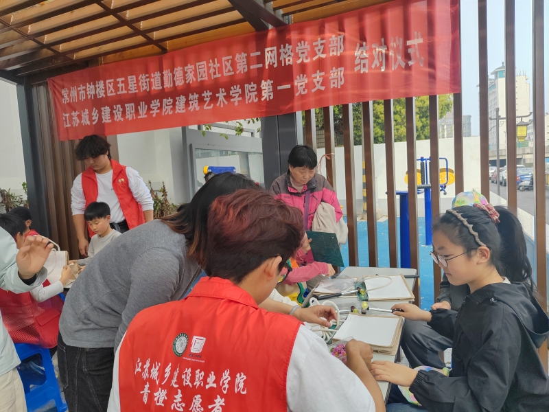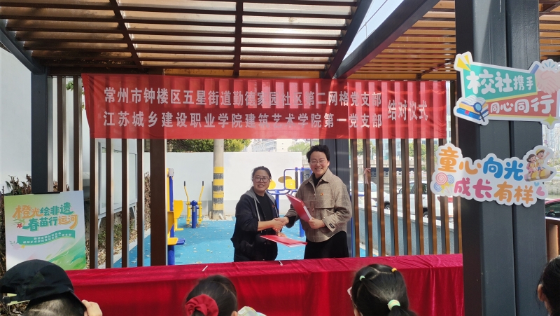 4月2日,江苏城乡建设职业学院澳门十大信誉好的网站党总支书记袁平带队第一支部党员、学生代表,赴常州市钟楼区五星街道勤德家园社区,与社区第二网格党支部举行党建共建签约仪式,并共同开展“橙光绘非遗 春苗行运河”校社合作主题系列志愿服务活动。